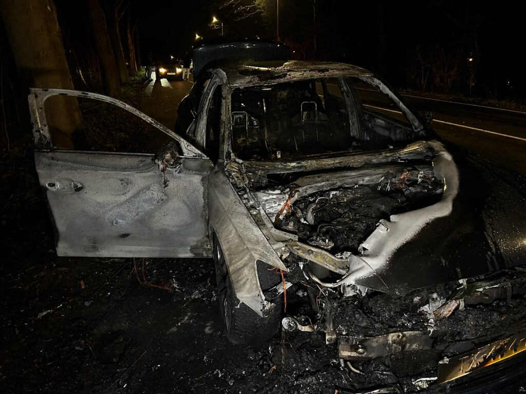 Even voor half tien vanavond is een auto volledig uitgebrand op de Duifhuisweg. De bestuurder en bijrijder konden op tijd uit de auto komen en zelf 112 bellen.
