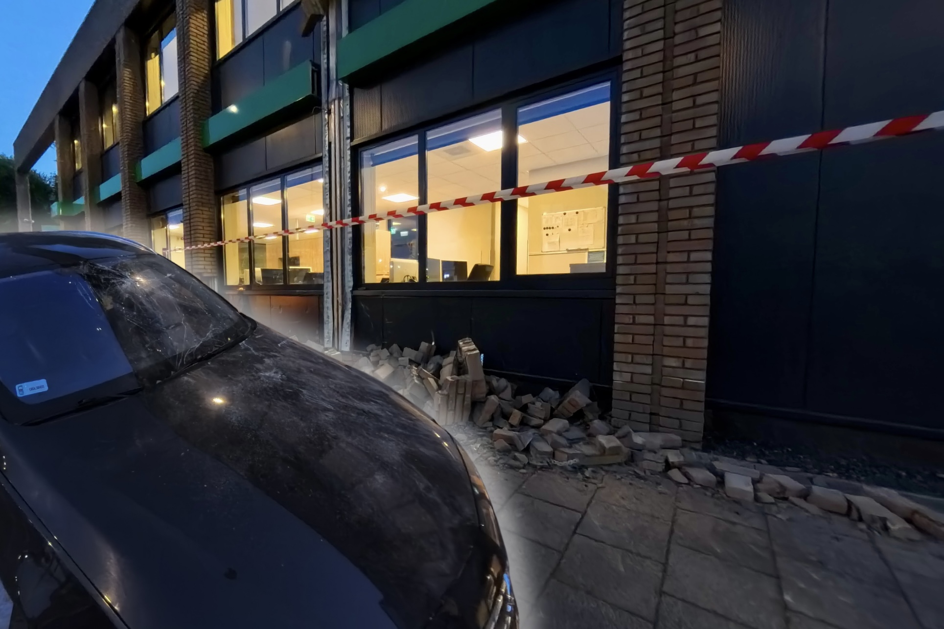 *Foto in de kop is bewerkt met in de gevel gereden auto.