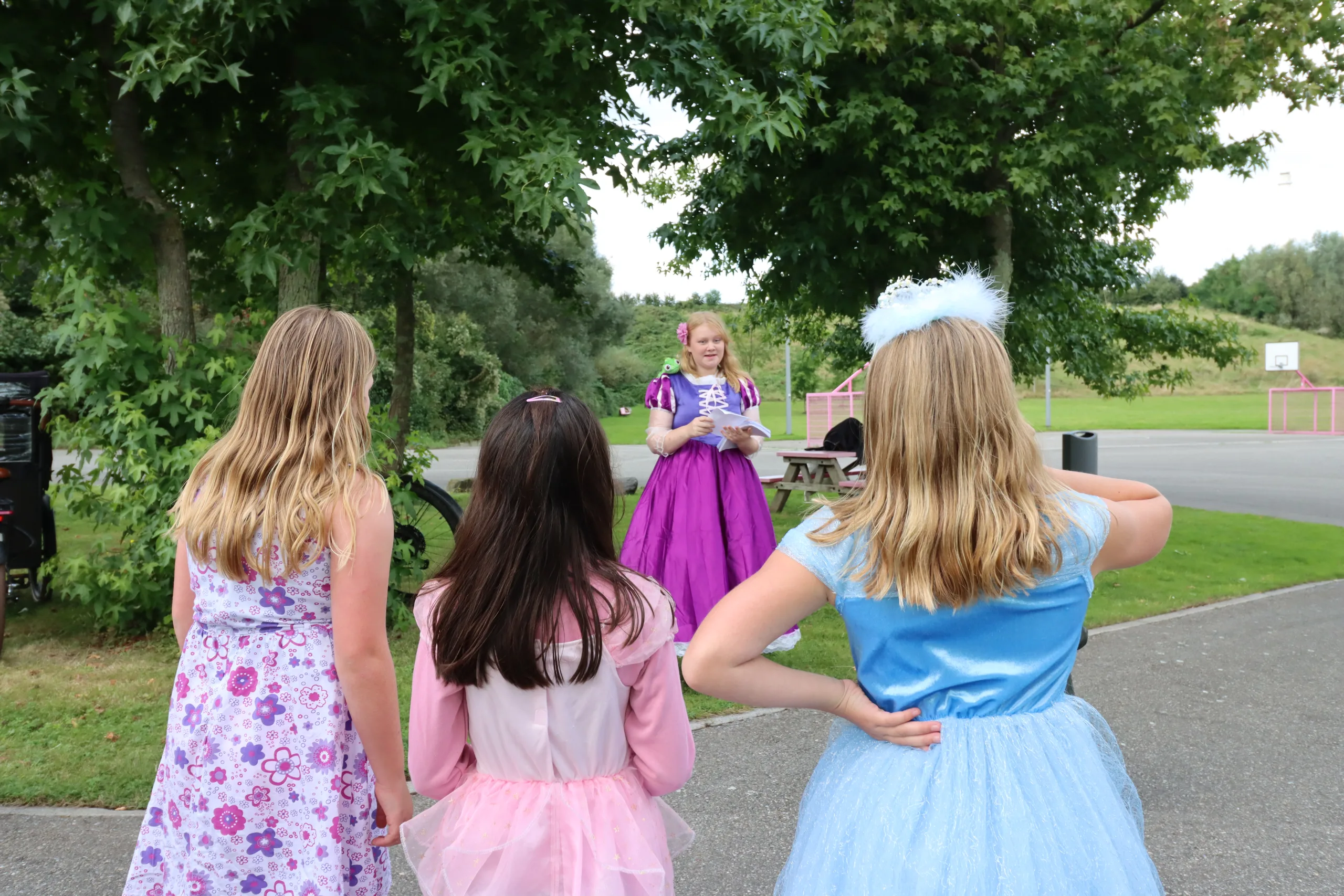 Bij elk sprookjesfiguur moesten de kinderen een opdracht uitvoeren, zoals een hinkelbaan afleggen of een tekening met stoepkrijt maken. Na het voltooien van de opdracht ontvingen ze een stempel. Met een volle stempelkaart konden de kinderen een klein cadeautje ophalen bij Rapunzel. Deelname aan de speurtocht was gratis en zorgde voor veel blije gezichten.