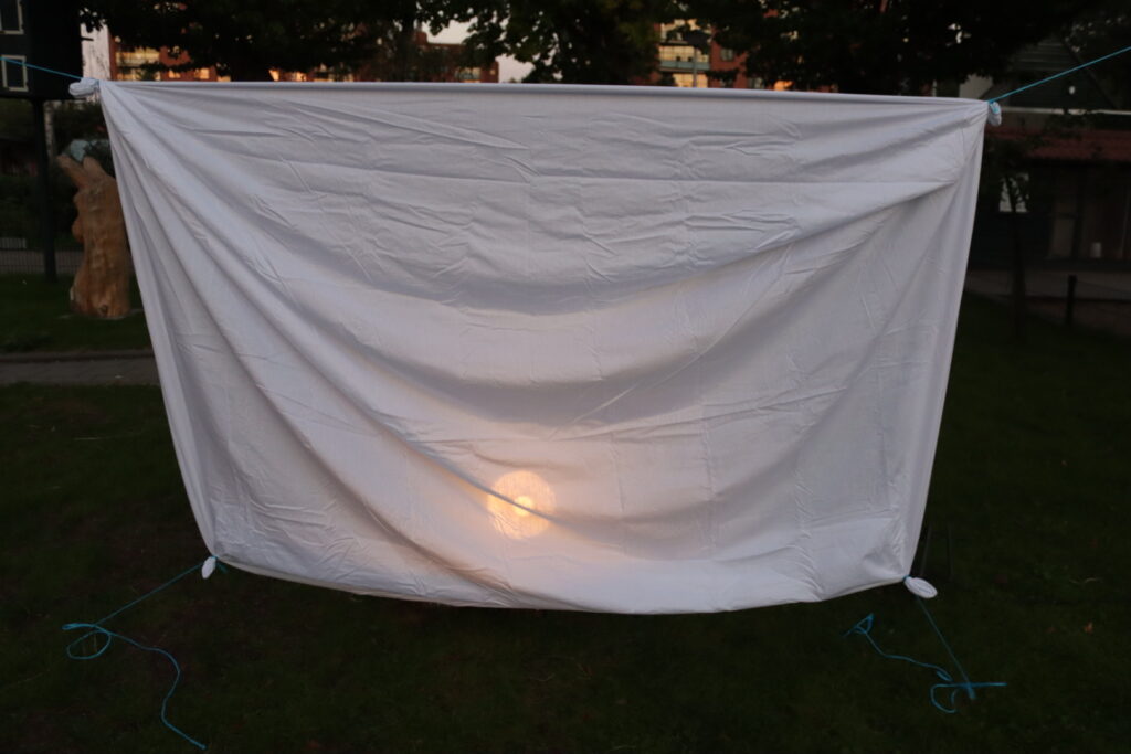 Toen de schemering viel bleef het stil bij het witte doek. Ook toen het donker was, kwamen de vlinders niet. De kinderen hebben het niet gemist, kijken naar de dieren terwijl je normaal al in je bed ligt is natuurlijk al spannend genoeg.